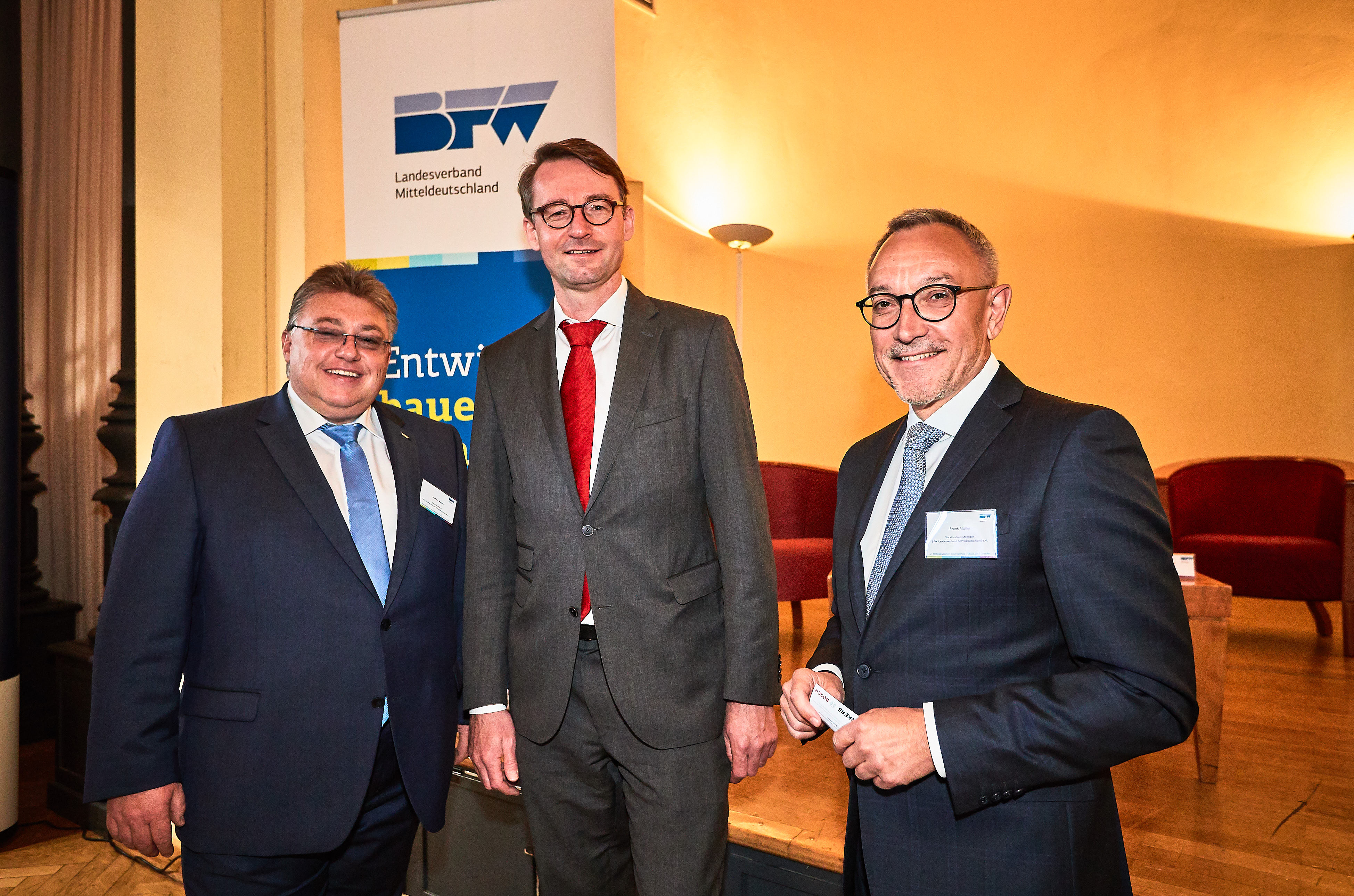 „Der 2. Mitteldeutsche Bauträgertag war eine ideale Plattform, um Wissen zu vertiefen, sich über neue Entwicklungen zu informieren und zum Netzwerken“, sagt Frank Müller, Vorsitzender des Vorstandes des BFW Landesverbandes Mitteldeutschland e.V. „Die Anwesenheit von Prof. Dr. Roland Wöller sowie den Politikern des Stadtrates und des Landtages unterstreicht zudem die sehr gute Zusammenarbeit zwischen den politischen Ansprechpartnern und dem BFW Landesverband Mitteldeutschland e.V.“